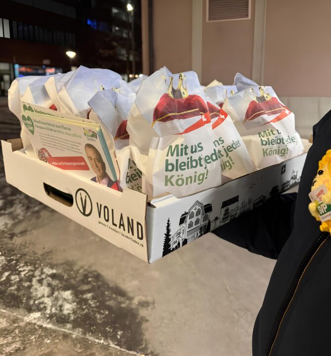 Die SVP Schlieren war am Dreikönigstag vom 6. Januar 2026 frühmorgens bei eisigen Temperaturen an zentralen Orten in Schlieren präsent. Parteimitglieder verteilten in gebrandeten Säckli verpackte Dreikönigskuchenstücke an Pendler und nutzten die Gelegenheit für den Austausch mit den Bürgern.